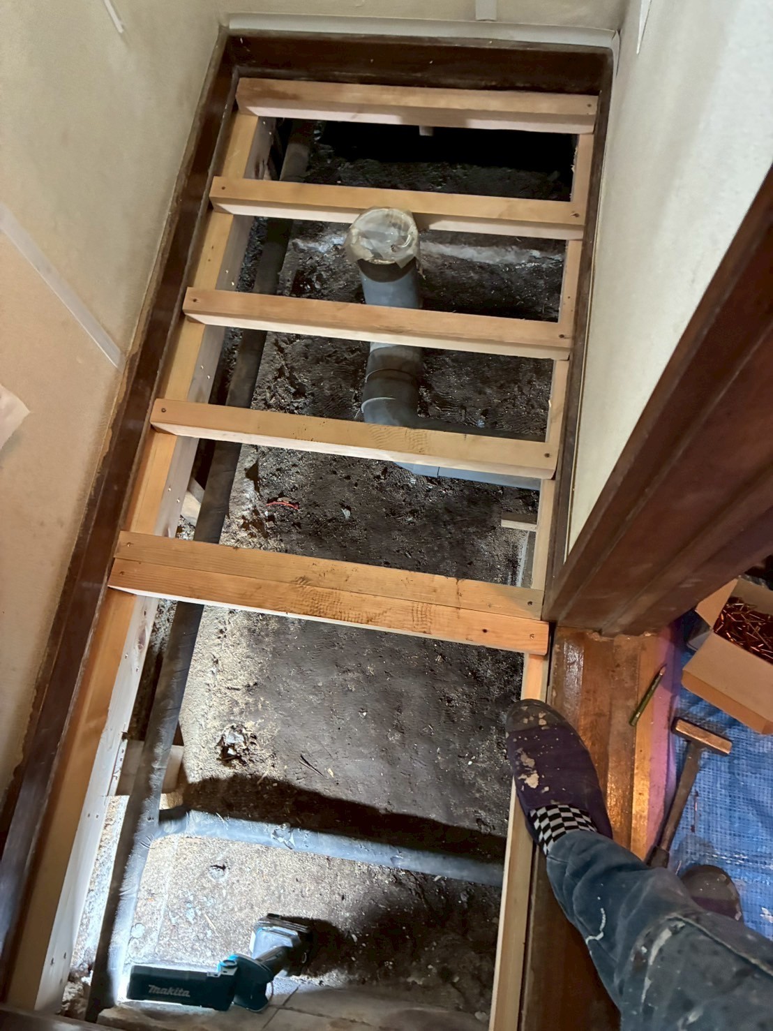 今回は床も沈んでしまっていて穴が開きそうな状態だったため、下地からしっかり直して