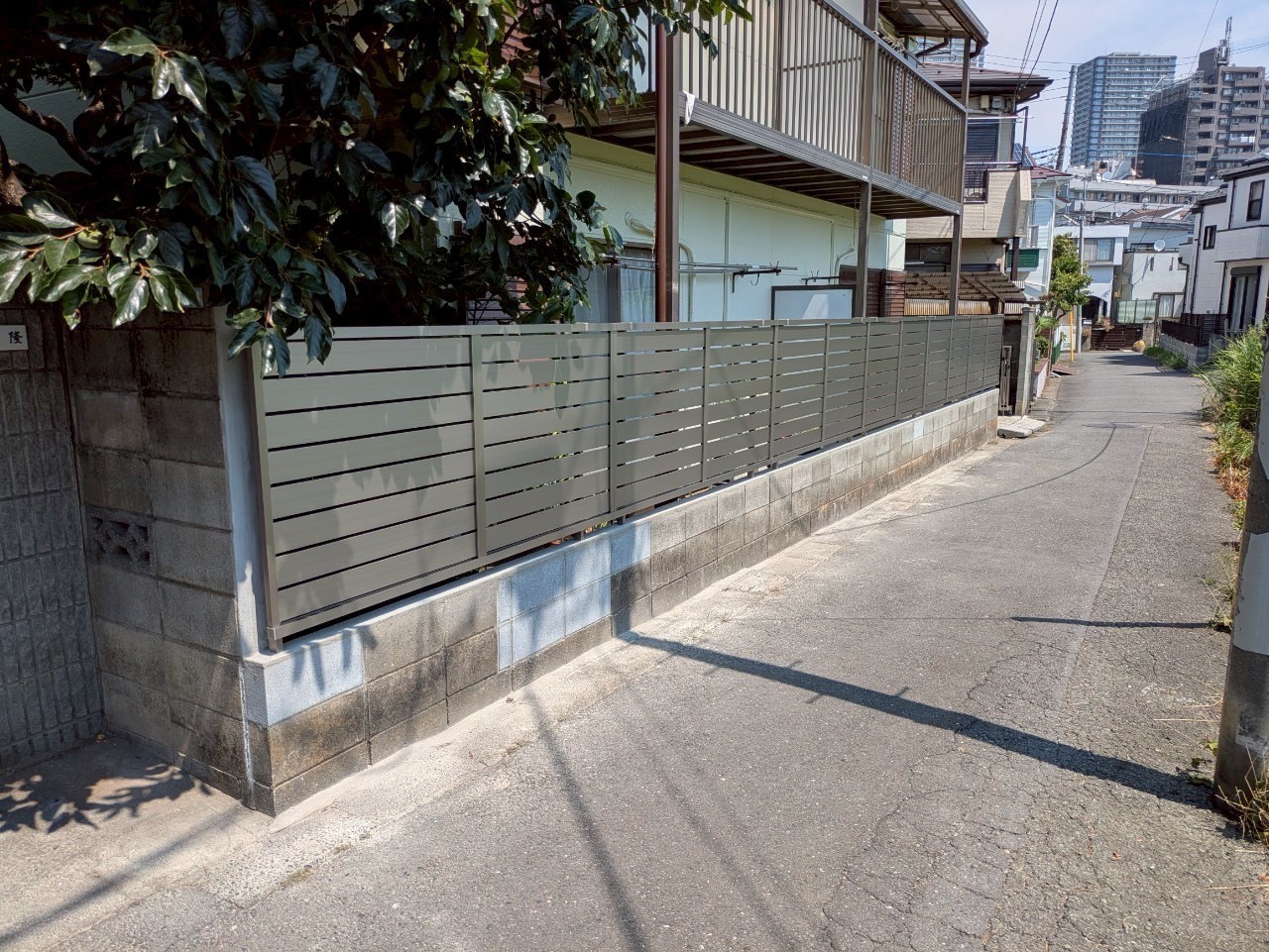 古くなっていたブロック塀を解体し、新しくフェンスを設置しました。